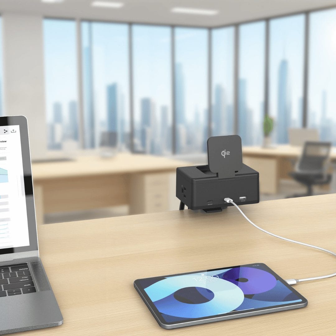 The Maggie X is a convenient power solution that offers 66W charging capability across the 2 USB-C ports and the USB-A port in the front. With 2 AC Tamper-Resistant Outlets on the top and 4 more at the bottom with the 4 port hub with overload protection, there is no shortage of power solution.