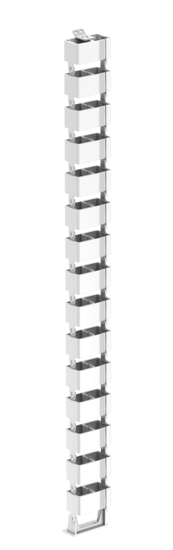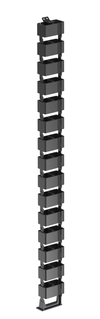 The FlexRoot vertical under-desk wire management solution is great for managing cords below and/or behind work stations. This wire management system is perfect for lift tables, where flexibility is a must. A weighted base helps keep the unit and cords in place. Links can be removed as needed for custom sizing for various desk heights.